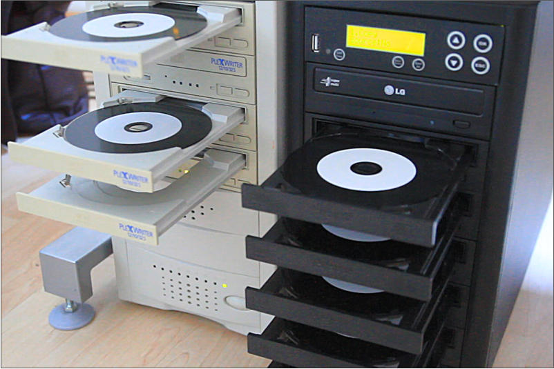 Nachdem Ihre Musik aufgenommen, gemischt und gemastert wurde, erstellen wir eine Master-CD, die als Grundlagezur Vervielfältigung dient.Da wir bei der Herstellung keinen Kopierschutz verwenden, können Sie die Datenträger auf jedem handelsüblichen CD-Brenner kopieren oder bei uns Vervielfältigen lassen.Bis zu einer Stückzahl von 500 Exemplaren werden diese bei uns mit modernen Kopierstationen gebrannt, über 500 Exemplare von einer externen Firma gepresst. Obwohl das Verfahren unterschiedlich ist, gibt es hierbei weder einen qualitativen noch einen optischen Unterschied.Selbstverständlich verwenden wir ausschließlich Markenrohlinge und überprüfen jede einzelne CD auf fehlerfreien Lauf. Außerdem vervielfältigen wir auch kleine Stückzahlen. Obtional gibt eine große Auswahl unterschiedlicher Rohlinge und Hüllen Ihrer CD die individuelle Note und selbstverständlich können Sie auch den Label-Druck - das Bedrucken der CD - frei nach Ihren Wünschen gestalten. Falls Sie Ihre CD veröffentlichen wollen, helfen wir Ihnen bei der Suche nach einem Label und der Abwicklung aller Formalitäten der GEMA.
